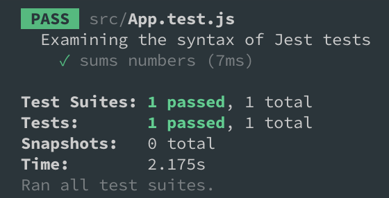 1 | describe('Examining the syntax of Jest tests', () => { |